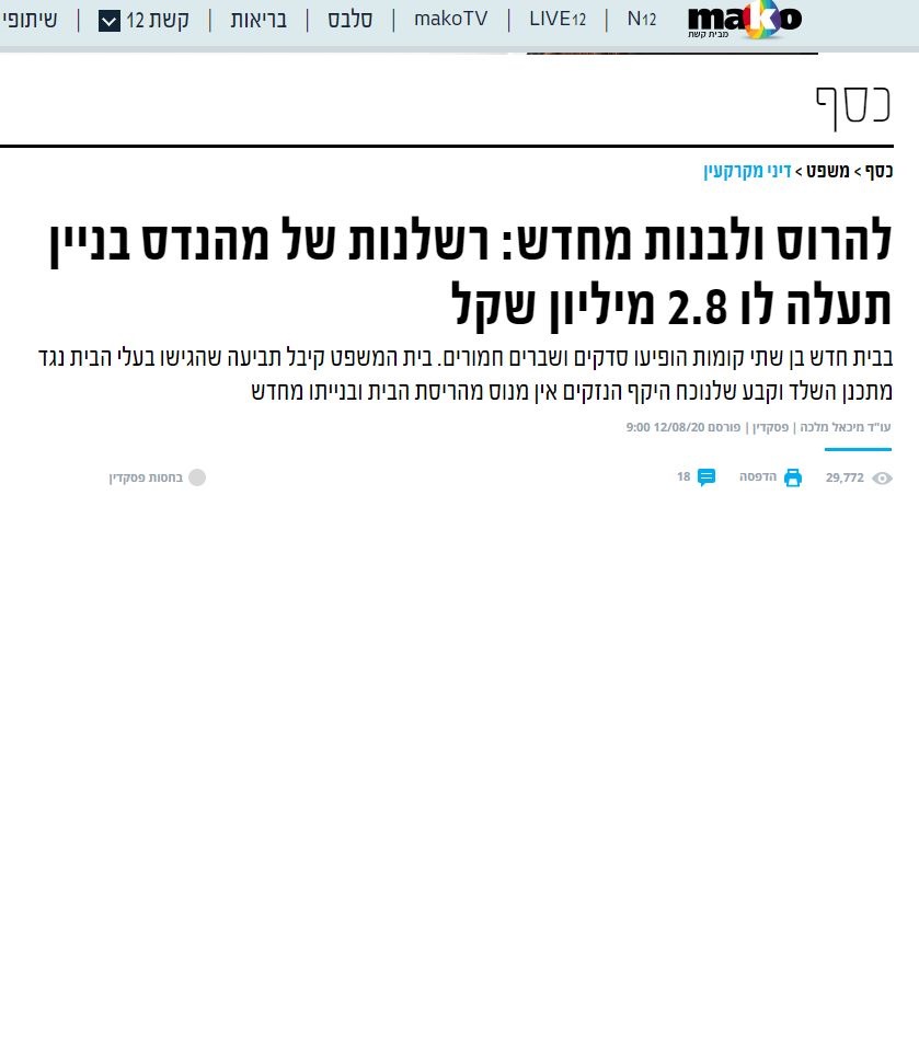 עורך דין מלכה מתמחה בתחום ליקויי בנייה וצבר ניסיון רב ומקצועי בייצוג יזמים ורוכשי דירות בתביעות העוסקות בליקויי בנייה, כאשר הניסיון המצטבר, ההשתלמויות הרבות שעבר בתחום הנדל"ן, תעודת מומחה ללקויות בנייה מטעם משרד העבודה וההשכלה המעשית בניהול פרויקטים ופיקוח בנייה, מציבים אותו ביתרון מהותי מול המומחה בצד השני ובעמדה מצוינת להטות את הכף לטובת לקוחותיו.
